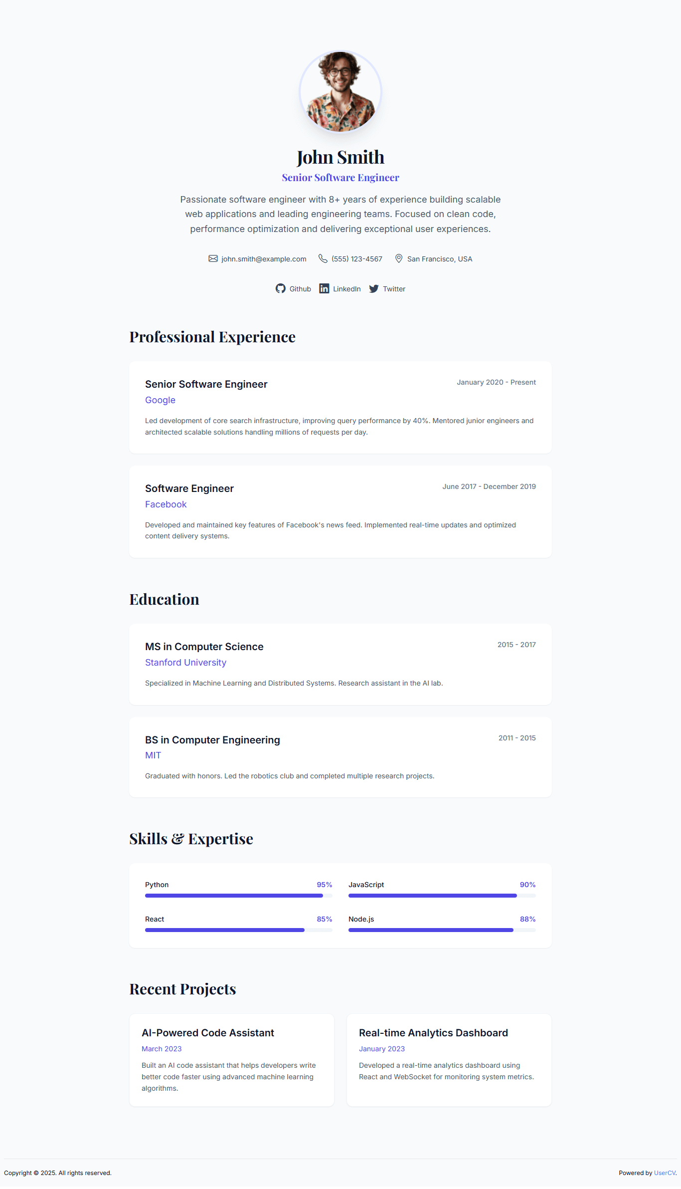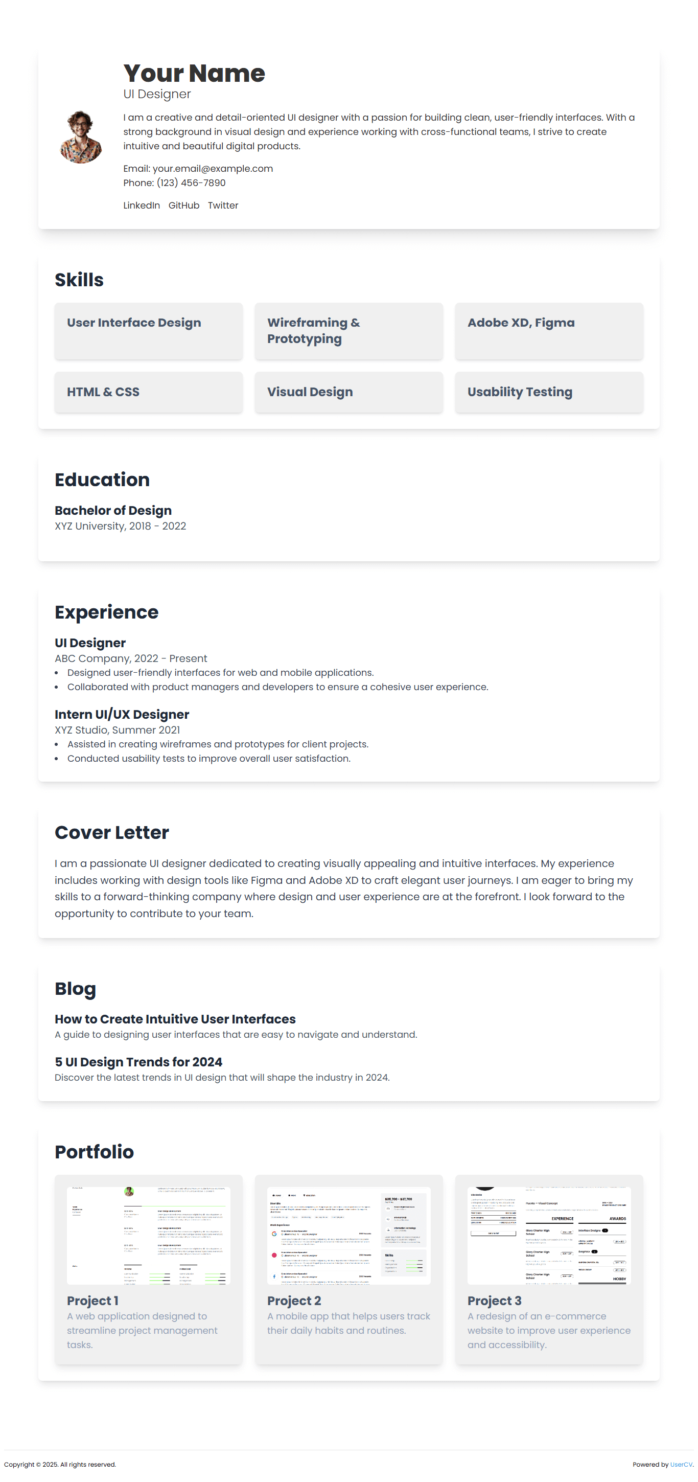 Create a stunning single-page website that showcases your skills, experience, and personality. No coding required.